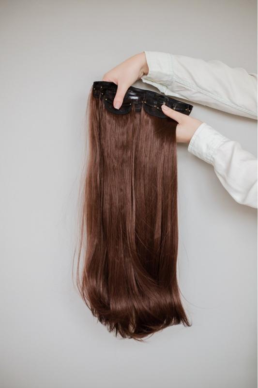 Накладные ровные светло коричневые длинные волосы на заколках комплект трес