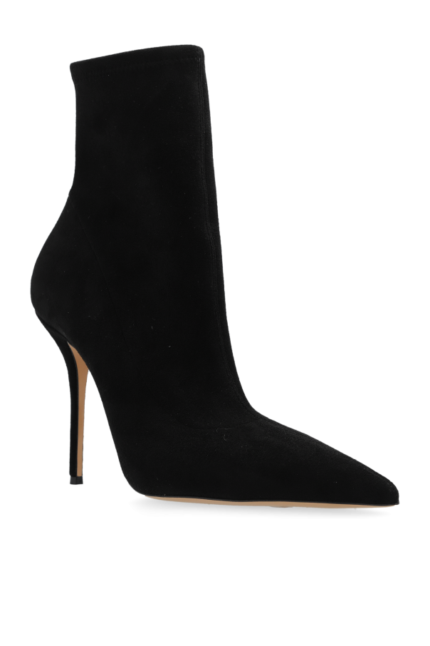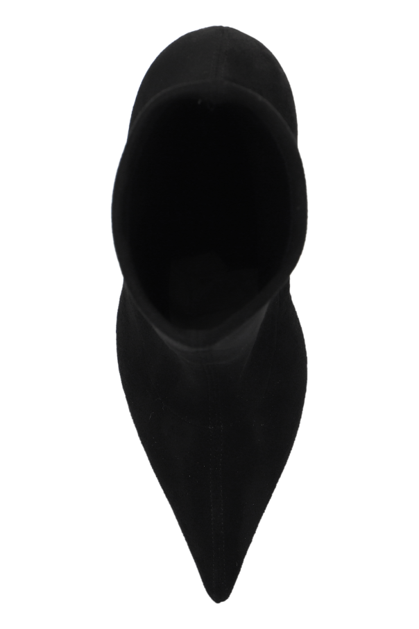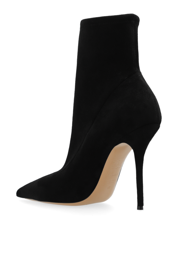 Introducing the Arceus Heeled Ankle Boots from the esteemed brand Casadei, a paragon of sophistication and modern elegance. These exquisite boots feature a sleek, pointed toe and a high stiletto heel, exuding an air of refined glamour. The ankle-high silhouette offers both style and support, making them a versatile addition to any wardrobe. Expertly crafted from luxurious black material that resembles suede, these boots boast a soft, sumptuous texture. Their minimalist design is free from extraneous embellishments, allowing the elegant form and premium materials to speak for themselves. The light-colored sole provides a striking contrast to the dark upper, enhancing the overall aesthetic. The Arceus boots are designed with both form and function in mind. The interior is lined with high-quality leather, ensuring comfort, while the exterior is made from durable rubber, offering resilience and longevity. These boots are perfect for sophisticated evening ensembles, yet versatile enough to complement chic casual outfits. Why Choose This Product? Iconic design from the renowned Casadei brand. Luxurious materials for a premium feel and look. Elegant and minimalist style perfect for various occasions. Comfortable leather lining and durable rubber exterior. High stiletto heel that elongates and flatters the leg.