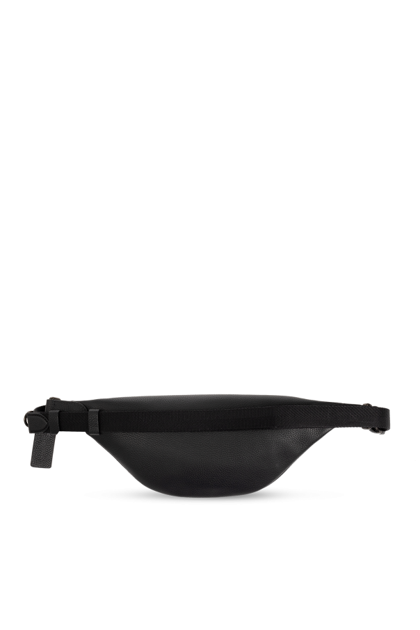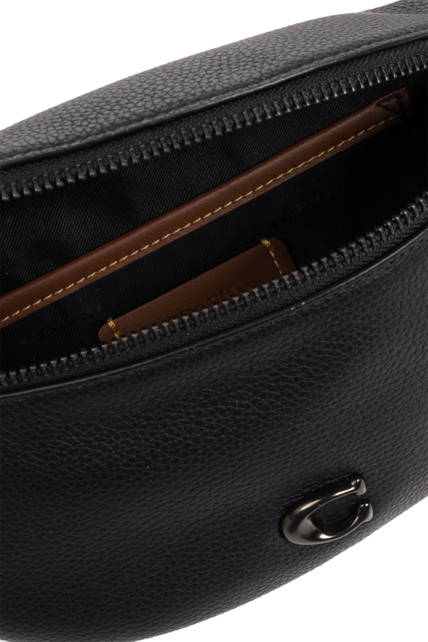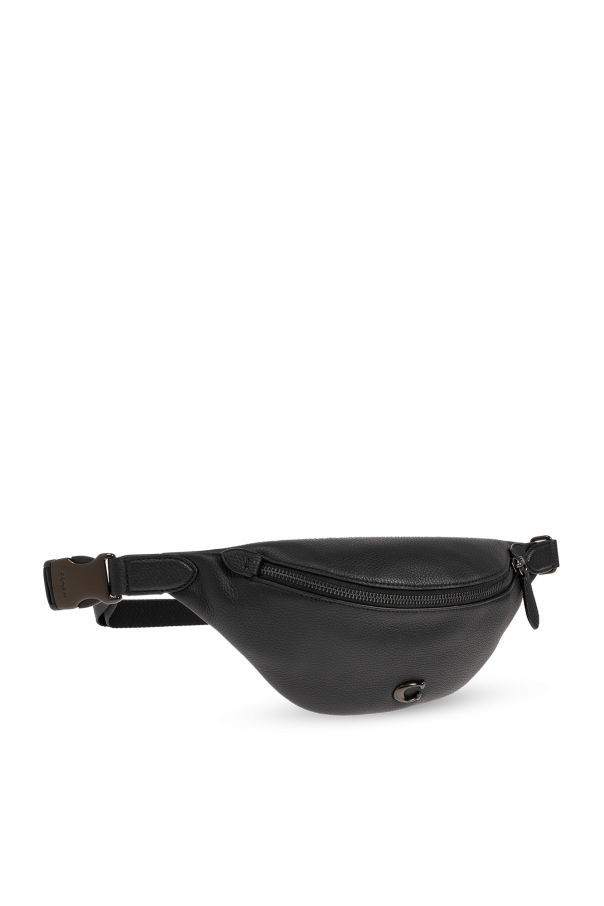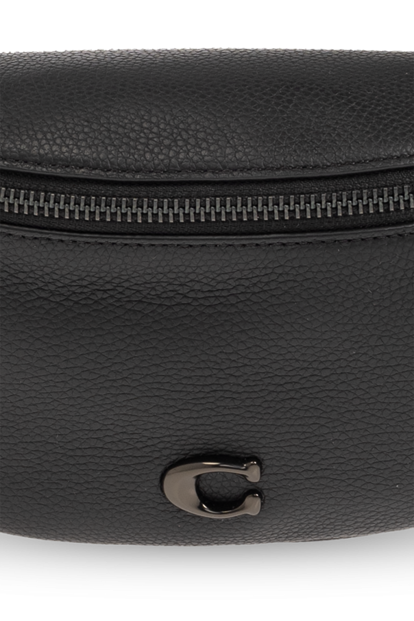 Black belt bag from Coach. Made of leather, this design features a zip fastening, logo detail, adjustable strap, black metal hardware and one internal compartment with one slip pocket.