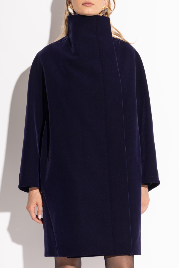 Introducing the Navy Stand-Up Collar Coat by the illustrious designer Alaïa. This exclusive piece epitomizes elegance with its minimalist design and meticulous craftsmanship. Crafted from a luxurious blend of wool and polyamide, the coat exhibits a smooth, subtly lustrous texture that speaks volumes of sophistication. The coat features a boxy silhouette, ensuring a clean and elegant look. Its uniform, pattern-free design exudes timeless charm. The high stand-up collar lends a modern touch, while the wide sleeves enhance comfort without compromising on style. Discreet side pockets are seamlessly integrated into the design, maintaining the coat’s sleek appearance. With a hidden closure system, this coat retains its minimalist allure. The short length, reaching above the knees, makes it versatile for various occasions. The back of the coat is simple and unadorned, emphasizing its understated elegance. Why You Should Buy This Product Exclusive design by the renowned Alaïa High-quality material blend of wool and polyamide Modern stand-up collar and wide sleeves for added comfort Discreet side pockets Minimalist, timeless design in a classic navy hue
