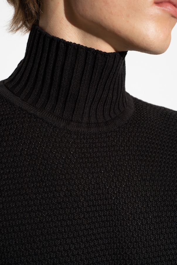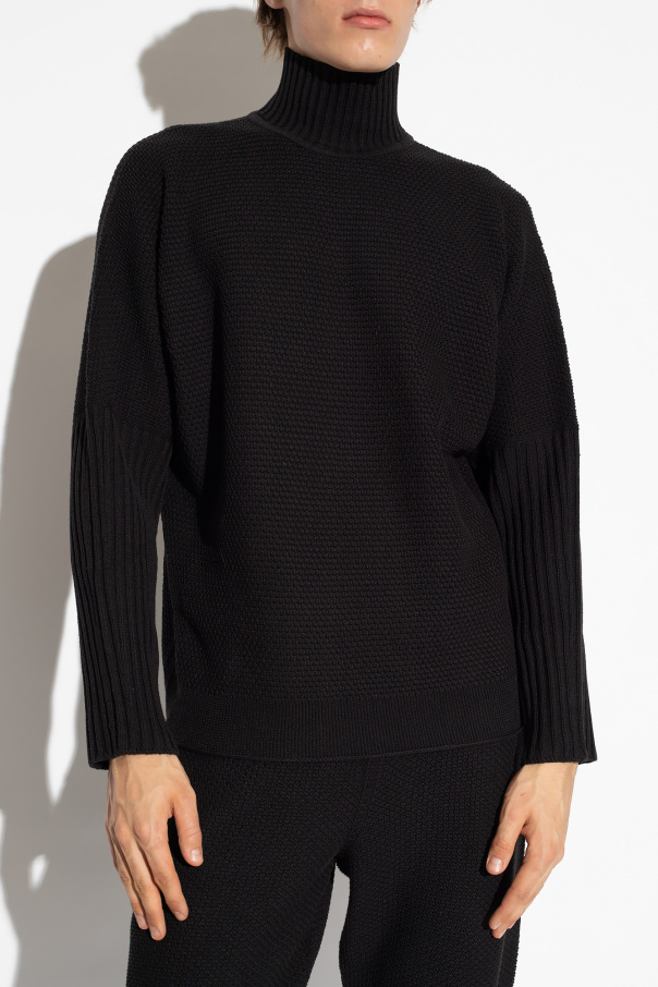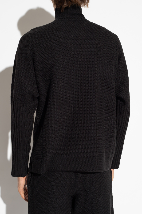 Black oversize turtleneck sweater with long sleeves from Issey Miyake.