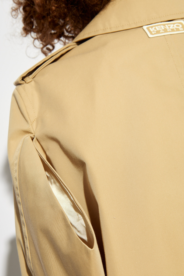 Introducing the Kenzo Short Trench Coat, a reimagined classic that marries elegance with a touch of urban sophistication. Crafted from a premium blend of 64% cotton and 36% polyamide for the outer layer, with a luxurious 100% viscose lining, this piece promises both comfort and durability. The coat's beige hue offers unparalleled versatility, seamlessly complementing a myriad of styles and palettes. Distinctive features such as a wide collar with lapels, shoulder epaulets, and adjustable cuff straps pay homage to the trench's heritage. Meanwhile, the double-breasted button closure stands out as a striking detail, enhancing the coat's classic appeal. Unlike traditional trenches, this model boasts a straight back without a rear slit, emphasizing its casual yet refined silhouette. An external tag bearing the Kenzo logo under the collar adds an exclusive touch, marking the coat as a piece of high fashion. Why Purchase This Product? Elegance Meets Functionality: The non-traditional closure and urban cut blend sophistication with practicality. High-Quality Materials: A composition of cotton, polyamide, and viscose ensures both comfort and longevity. Versatile Styling: Its neutral beige color makes it a perfect match for a variety of outfits and occasions. Unique Branding: The external Kenzo logo tag offers a distinctive mark of quality and designer appeal.