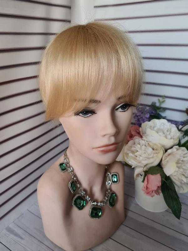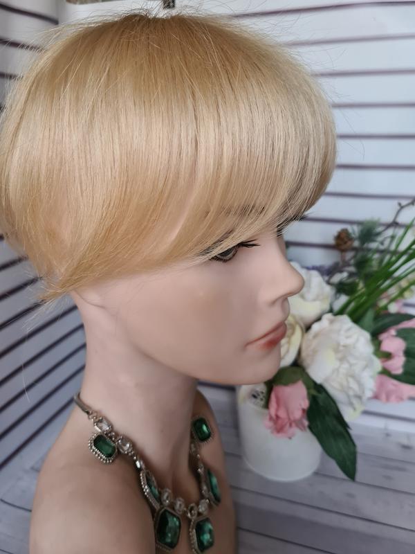 Накладка челка на макушку из натуральных человеческих словянских волос без имитации кожи головы.Волос мягенький тонкий рассыпчатый окрашен в красивый блонд.Накладку можно красить тонировать выравнивать и крутить.Накладки из натуральных волос используются для людей с малым количеством волос.