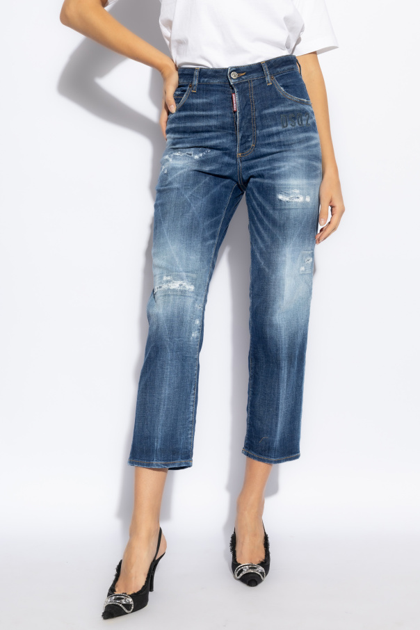 Introducing the Dsquared2 'Boston' Jeans, a testament to the fusion of high-end fashion and relaxed, everyday wear. Crafted from a premium blend of 98% cotton and 2% elastane, these jeans offer unparalleled comfort without compromising on style. The navy hue, accentuated with deliberate fading and lighter 'washed' areas, adds a touch of casual elegance, making these jeans a versatile addition to any wardrobe. The 'Boston' jeans feature a classic straight-leg cut with a contemporary cropped length, embodying the modern trends of denim fashion. Attention to detail is evident in the metal buttons and rivets, contrasted by vibrant yellow stitching that epitomizes denim craftsmanship. Further enhancing their allure, the jeans are adorned with the iconic red DSQUARED2 logo patch, signifying the mark of designer luxury. Functionality meets style with five practical pockets; three slip pockets and two with button closures, ensuring essentials are kept secure. The button-up fastening underscores the jeans' classic appeal, while the slight stretch in the fabric ensures a flattering, form-fitting silhouette. Why Purchase the 'Boston' Jeans? Exclusive Designer Quality: Emanate sophistication with DSQUARED2's renowned design and quality. Versatile Style: The navy 'washed' effect and straight-leg cut ensure these jeans can transition from day to night effortlessly. Exceptional Comfort: A blend of cotton and elastane offers a stretch fit that moves with you. Distinctive Details: Metal hardware, contrast stitching, and the signature logo patch elevate these jeans above the ordinary. Practicality: Five pockets combined with a secure button-up fastening make these jeans as functional as they are fashionable.