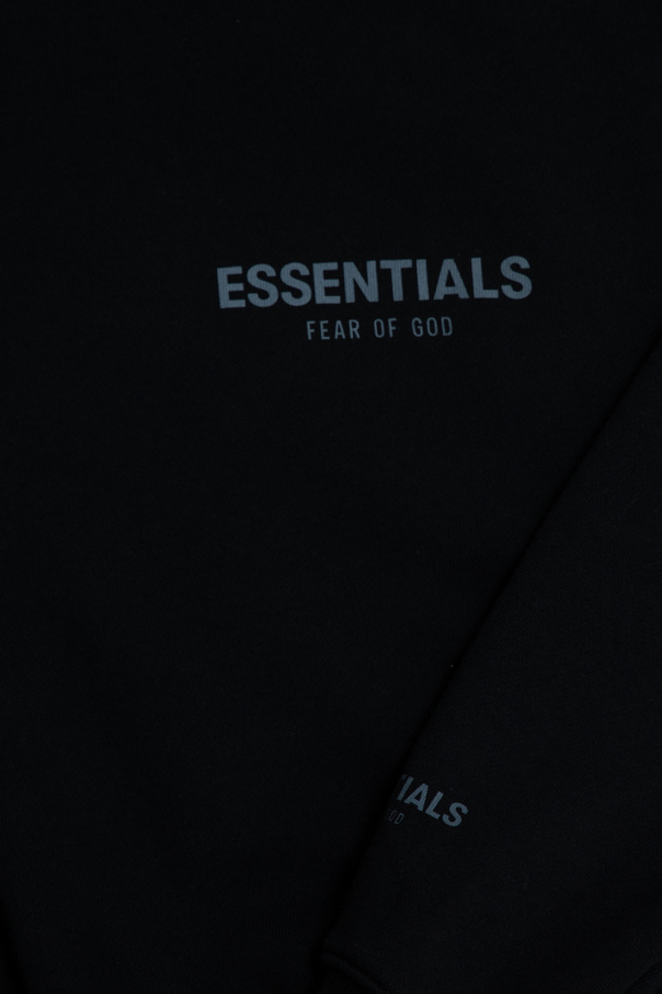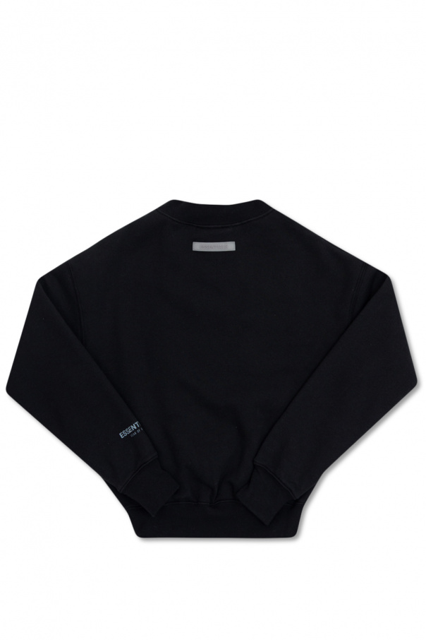 Black crewneck sweatshirt from Fear Of God Essentials Kids. Crafted from cotton jersey, this style showcases a ribbed collar, bottom hem and cuffs, a dark grey graphic print and a logo appliqué at the back.