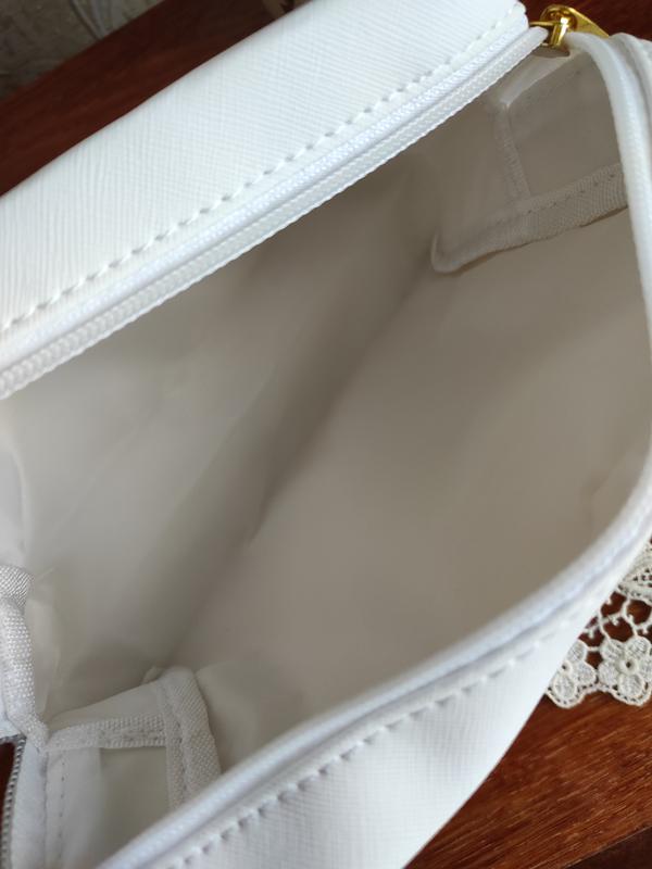 Новая, белая, вместительная косметичка Dove. Внутри есть подкладка. Одно отделение. Молния золотистого цвета.