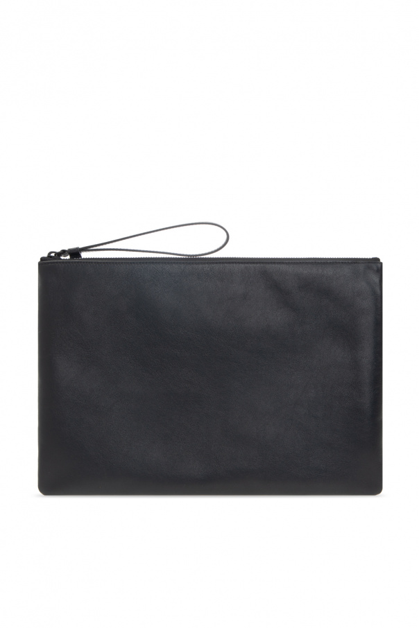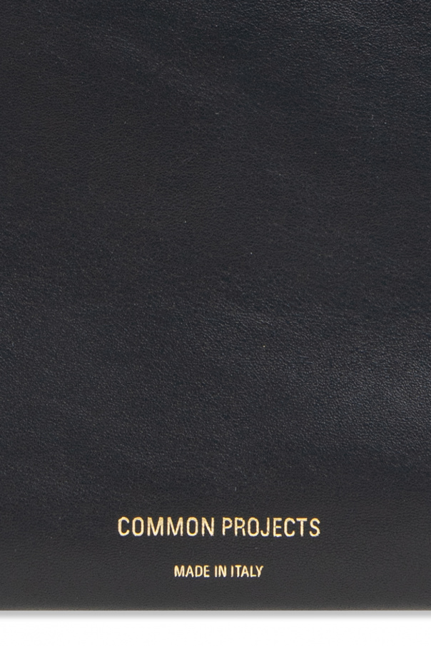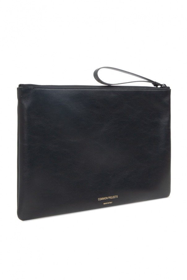 Black handbag from Common Projects. Crafted from leather, this design fastens via a zipper and showcases a gold-tone logo, a wrist strap and one internal compartment.
