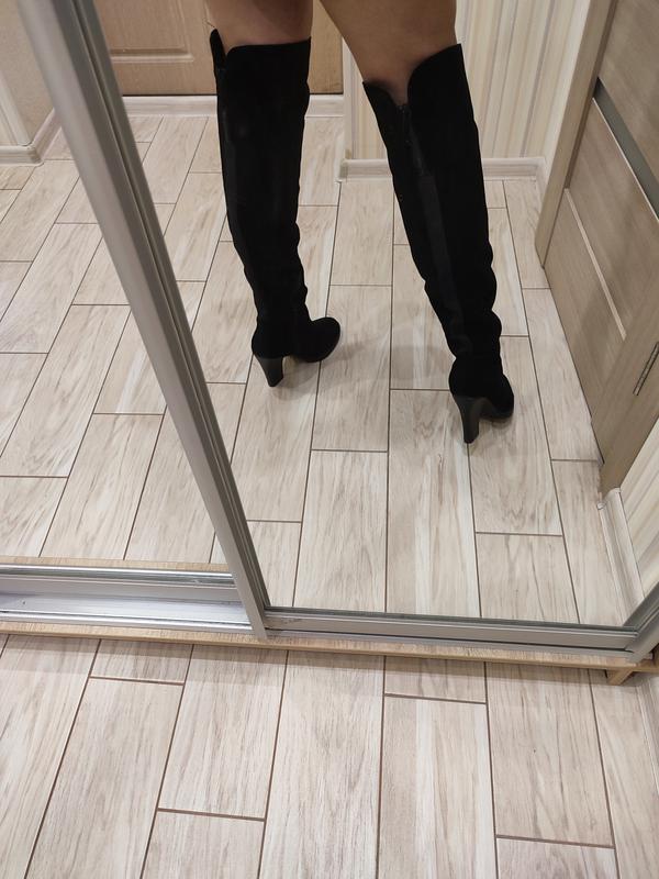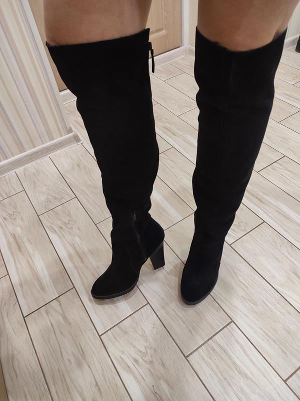 Високі ботфорти осінні на стійкому каблуці 10 см, натуральна замша, розмір 41. МОЖЛИВИЙ ТОРГ!