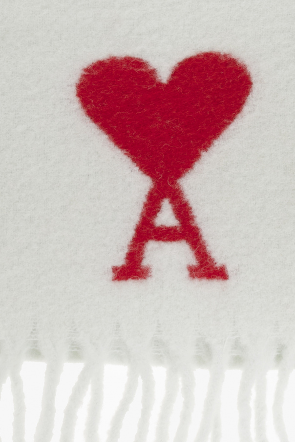 Light green scarf from Ami Alexandre Mattiussi. Made of alpaca, this item is enriched by a red Ami de Coeur logo embroidery and fringe edges.