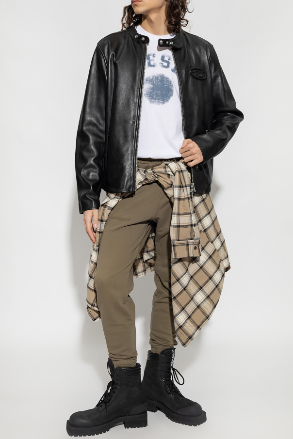 Khaki ‘P-TARY-IND’ sweatpants from Diesel. Made of cotton, this pair features a drawstring waistband, four slip pockets, elasticated cuffs and a printed logo in blue and red.