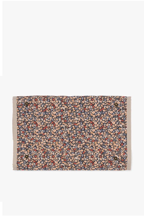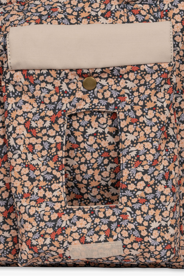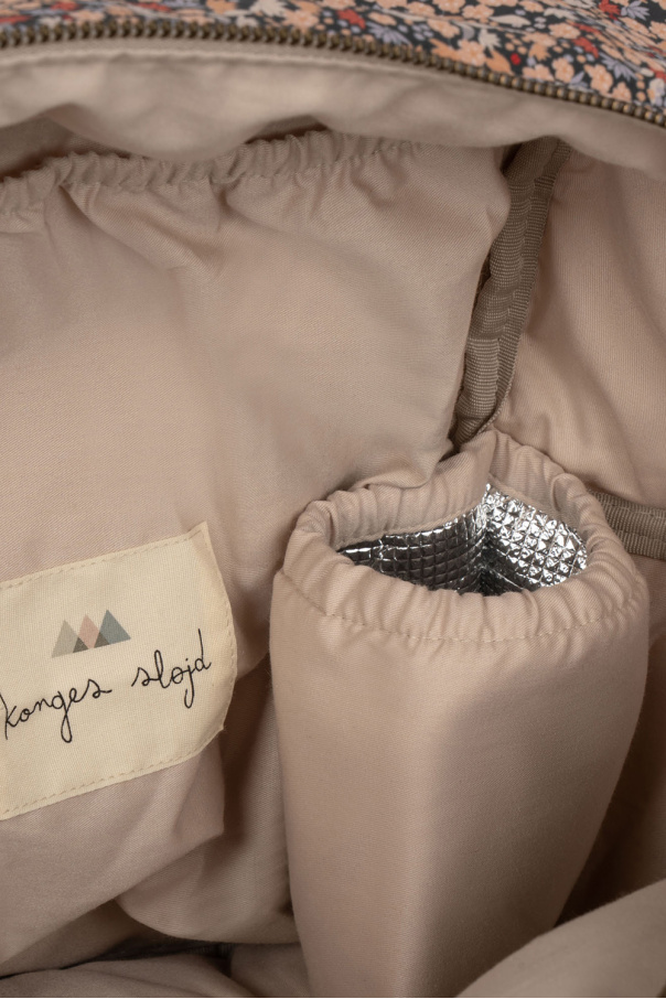 Multicolored changing bag from Konges Slojd. Made of fabric with the OEKO-TEX® certificate and a BIONIC-FINISH® ECO coating. Fastened with a two-way zip, this design features a floral pattern, one snap-fastened pocket, flap pocket with velcro fastening designed for wet wipes, two handles, detachable and adjustable shoulder strap and antique gold-tone metal hardware. It has one internal compartment with a changing mat, three slip pockets, one zip pocket and insulated bottle pocket.