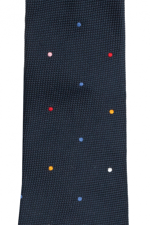 Navy blue tie from Paul Smith. Made of silk, this item showcases embroidered colourful dots all over.
