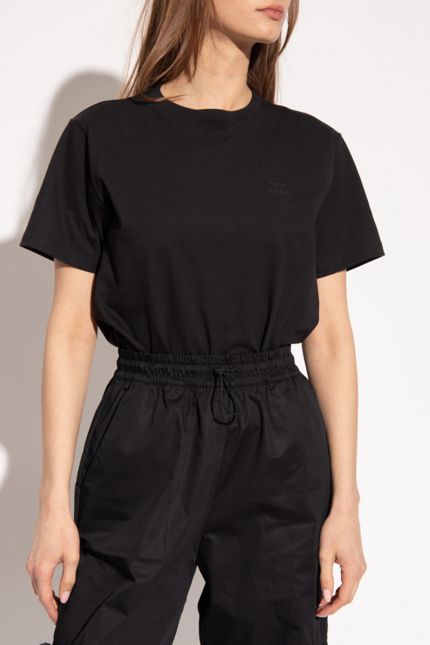 Black crewneck T-shirt from ADIDAS Originals, the ‘End Plastic Waste’ line. Crafted from organic cotton, this style features short sleeves, an elasticated collar and Trefoil logo embroidery on the front.