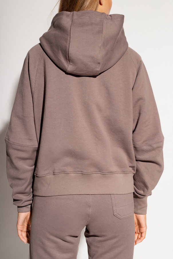 Brown hoodie from Y-3 Yohji Yamamoto. Crafted from cotton, this garment features a brown logo print, drawstring hood, two zip pockets and ribbed trims at the hem and cuffs.