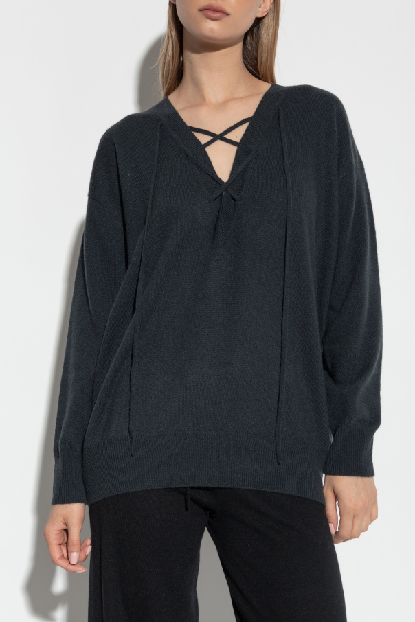 Introducing the 'Erna' Cardigan by Lisa Yang, a masterpiece of knitwear that redefines elegance through simplicity and comfort. Crafted from the finest 100% Cashmere, this piece offers an exquisite touch against the skin, promising warmth without compromising on breathability. Its oversized silhouette gracefully drapes over the body, presenting a relaxed yet refined aesthetic. The cardigan's unique allure is encapsulated in its innovative neckline—a captivating arrangement of crisscross straps creating delicate cut-outs that add a touch of allure to the minimalist design. The garment's smooth, solid charcoal gray hue enhances its versatility, making it a sublime addition to any wardrobe. With button closures and two practical pockets, 'Erna' combines functionality with sophisticated style. Notably absent of visible branding, the cardigan carries an air of understated luxury, with the designer's mark discreetly placed, ensuring the focus remains on the impeccable craftsmanship and design. Why purchase the 'Erna' Cardigan? Exclusive Design: The unique neckline with crossing straps offers a distinctive style statement. Luxury Material: Made from 100% Cashmere, providing unparalleled softness and warmth. Versatile Elegance: Its charcoal gray color and minimalist design ensure it can complement any ensemble. Functional Features: Equipped with button closures and two pockets for added convenience.