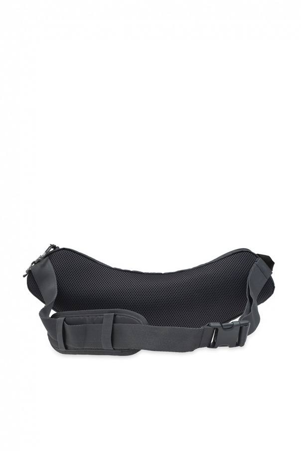 Black belt bag from ADIDAS Originals. Made of ripstop CORDURA® fabric, this design is complete with a two-way zip fastening, rubber logo appliqué, two zip pockets, velcro flap pocket, white and black strings, adjustable belt and one internal compartment with two slip pockets.