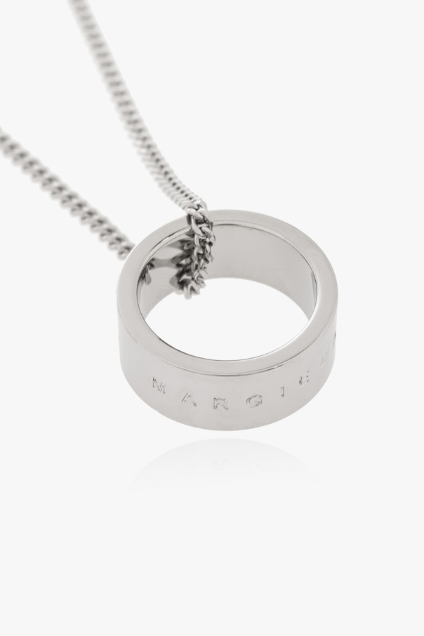 Silver-tone necklace from MM6 Maison Margiela. Crafted from brass, this item features a round logo-engraved pendant and adjustable lobster clasp closure.