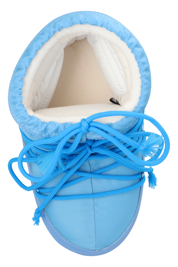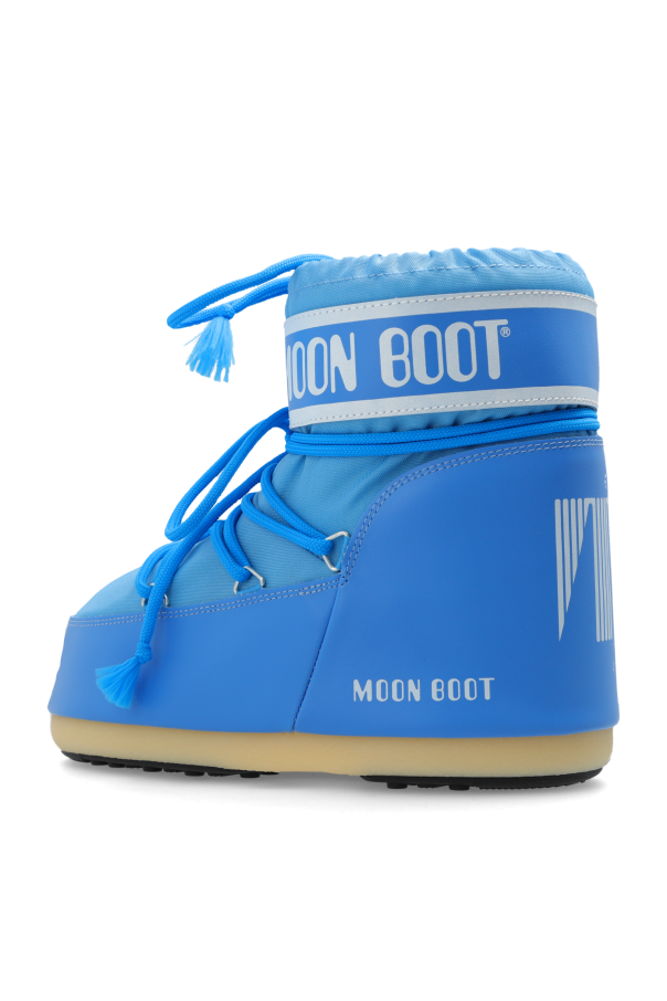 Introducing the epitome of winter elegance and functionality, the Icon Low Nylon Snow Boots by Moon Boot. Crafted with a distinctive, rounded silhouette and a robust sole, these boots offer unparalleled insulation and comfort, perfect for traversing through snowy landscapes. The model's ankle-high design ensures ease of movement, setting it apart from traditional snow boots. Constructed from high-quality nylon, these boots are not only lightweight but also resistant to moisture. The interior is lined with a soft material, providing additional warmth during the coldest days. The upper part features lace-up closures for a secure fit and an elastic cuff to retain heat. Adorned with the iconic MOON BOOT logo on the upper band and side, these boots are a statement of style and brand heritage. The dominant blue color exudes a modern and fresh aesthetic, while the contrasting light-colored sole adds a striking visual element. The sole is engineered with treads to ensure superior grip on slippery surfaces. Why Choose This Product? Lightweight and moisture-resistant nylon construction. Soft lining for enhanced warmth. Secure lace-up and elastic cuff for optimal fit and heat retention. Iconic design with bold logo placements. Contrasting sole with superior grip treads.
