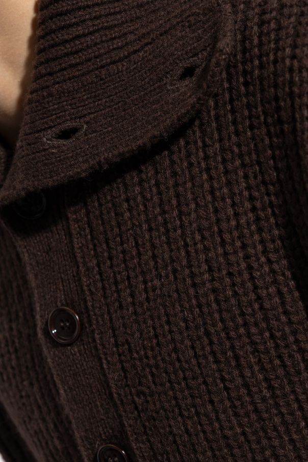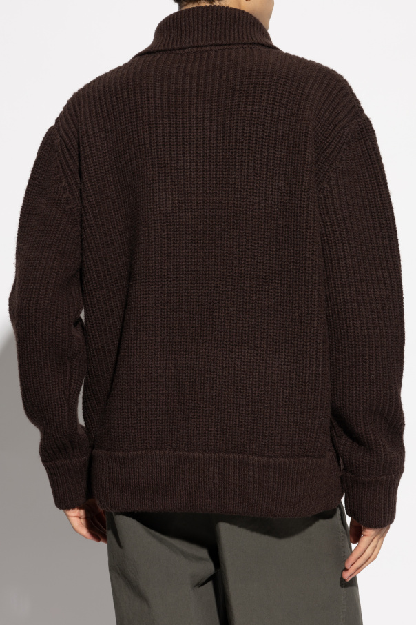 Introducing the Exclusive Turtleneck Sweater from the renowned fashion collection by Dries Van Noten. This exquisite piece, crafted from the finest 100% wool, embodies the perfect blend of luxury and functionality. The dominant deep brown hue of the sweater exudes sophistication, while the thickly woven knit ensures warmth, making it an ideal choice for cooler days. The relaxed fit, as depicted on the model, offers both comfort and style, complemented by long sleeves and wide, elasticated cuffs and hem. The turtleneck features a three-button closure, adding a touch of elegance and allowing for adjustable neckline opening. The intricate knit pattern, visible in the close-up images, underscores the high quality and exclusive nature of the sweater, with dark buttons harmonizing beautifully with the overall color scheme. This classic yet contemporary piece is versatile enough to pair with both casual and more formal attire, making it a timeless addition to any wardrobe. The additional collar holes offer further adjustment options, enhancing its practicality. Why Choose This Product? High-quality 100% wool material for exceptional warmth and comfort. Elegant deep brown color with a sophisticated knit pattern. Relaxed fit with long sleeves and elasticated cuffs and hem. Turtleneck with three-button closure for adjustable elegance. Versatile design suitable for both casual and formal wear. Exclusive piece from Dries Van Noten's renowned collection.