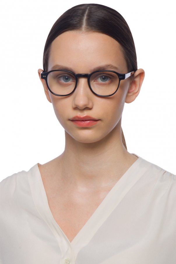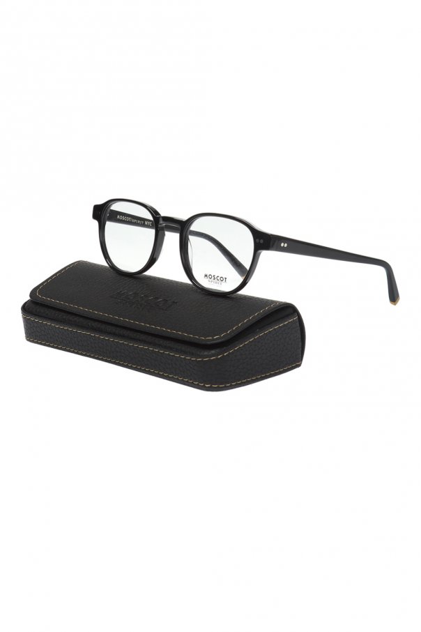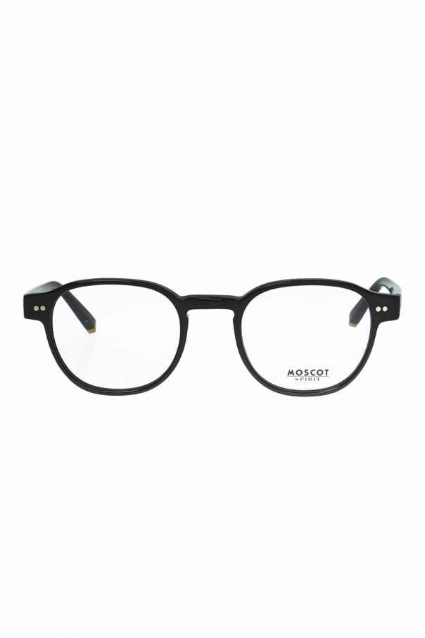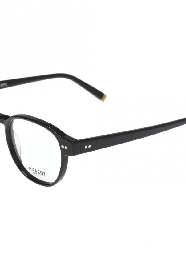 Black ‘Arthur’optical glasses from Moscot. Decorated with a logo print.