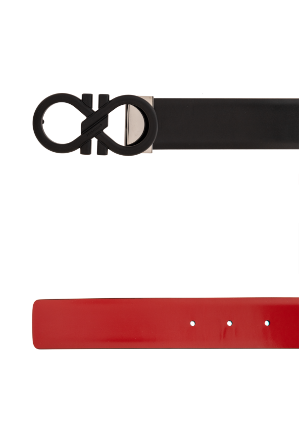 Reversible belt in red and black from FERRAGAMO. Made of smooth leather, this item features a black Gancini buckle.