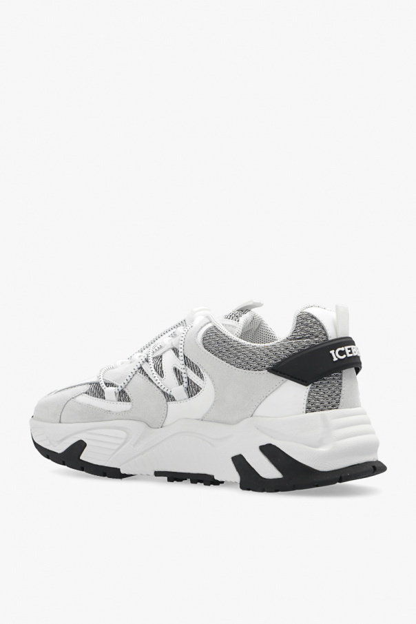 White, light grey and black ‘Kakkoi’ sneakers from Iceberg. Crafted from leather, this lace-up model sits on a black and white Vibram® rubber sole and showcases cinching drawstrings, logo details and fabric panels inlaid with silver-tone lurex yarn.
