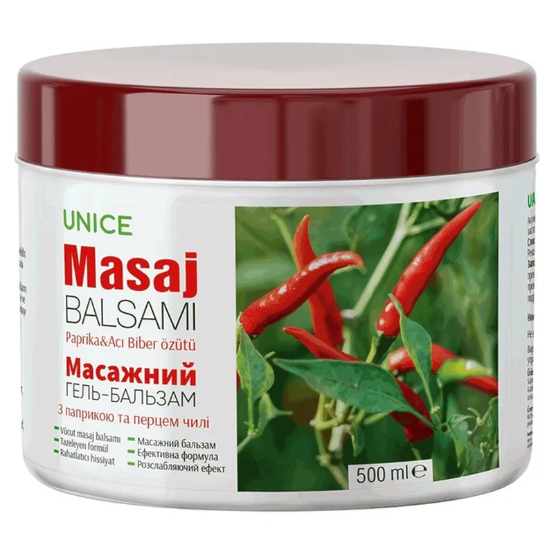 Массажный гель-бальзам Unice с паприкой, перцем чили и кофеином 500 мл