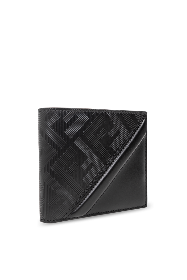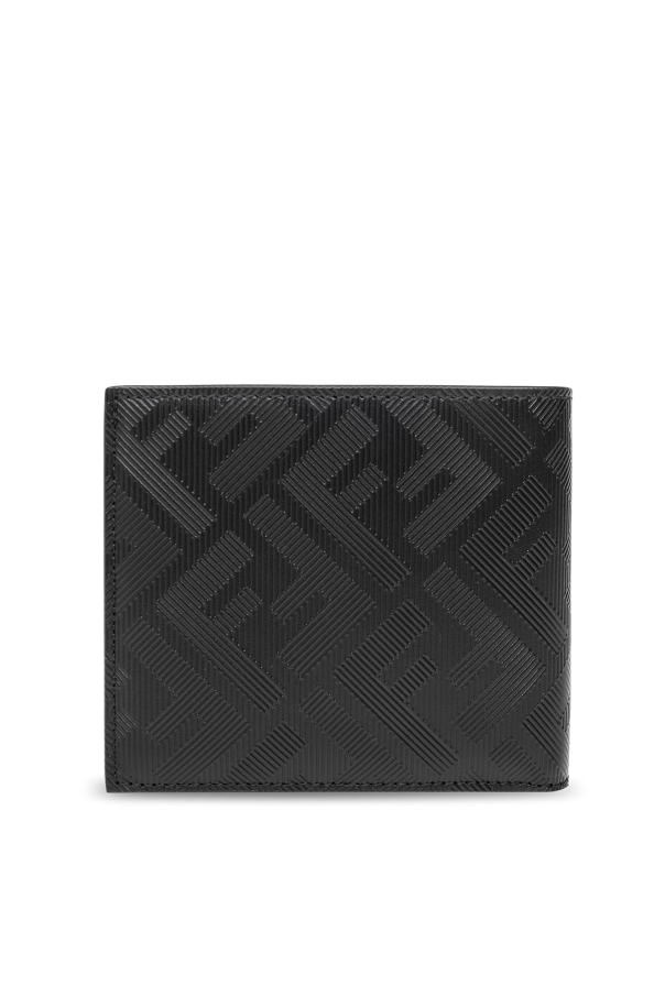 Black folding wallet from Fendi. Made of leather, this design showcases a textured monogram motif as well as two bill compartments, two slip pockets and eight card slots inside.