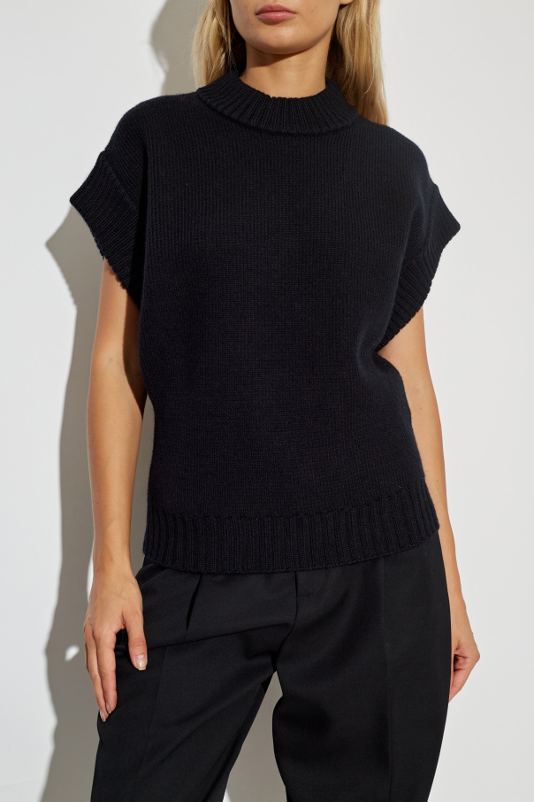 Discover the epitome of sophistication with the Bottega Veneta Wool Vest, a distinguished piece from our exclusive collection of women's clothing. This vest, crafted from a luxurious blend of wool, polyamide, viscose, and elastane, exudes warmth and comfort while maintaining an air of elegance. The vest features a simple, classic cut with short sleeves and prominently defined shoulders, giving it a unique character. Its rich, textured wool fabric adds a touch of sophistication, making it a standout piece in any wardrobe. The design is completed with a thick, ribbed neckline, and wide ribbed cuffs on the sleeves and hem, enhancing its refined aesthetic. Adorned in a sleek black hue, this vest is both versatile and timeless, seamlessly pairing with various outfits. The minimalist design, free from visible logos or inscriptions, highlights Bottega Veneta's commitment to understated luxury. Why Choose This Product? Elegant and classic cut with short sleeves and defined shoulders. Made from high-quality wool blend for ultimate warmth and comfort. Textured fabric and ribbed details enhance its sophisticated appeal. Versatile black color for easy styling with other wardrobe pieces. Minimalist design, embodying timeless elegance.