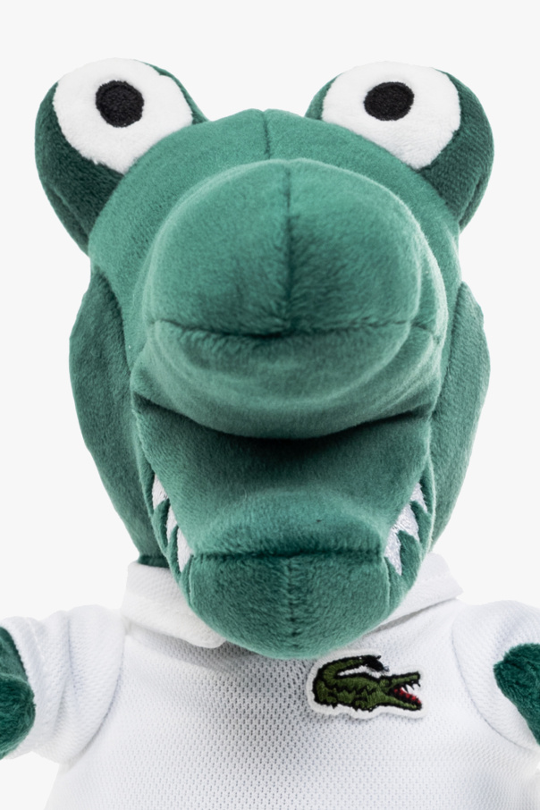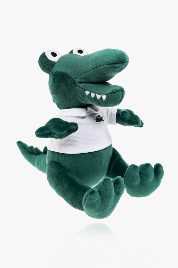 Green and white crocodile-shaped mascot from Lacoste featuring a logo patch on the front.