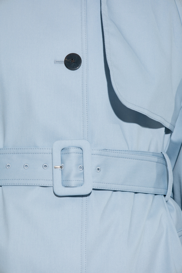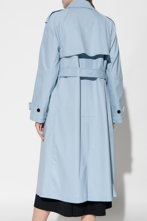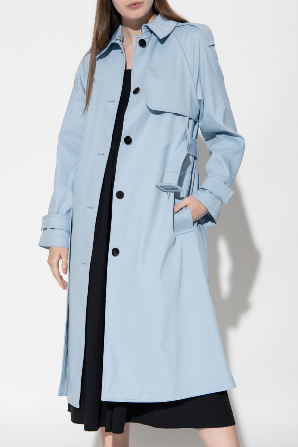 Blue coat from Theory. Cinched at the waist, this style features button fastenings, two slip pockets and long sleeves.