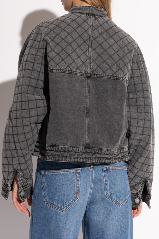 Introducing the Celiany denim jacket from our exclusive collection, a quintessential piece by the renowned French designer Isabel Marant. Crafted from high-quality denim, this jacket epitomizes both durability and sophistication. Embrace the elegance of the Celiany jacket, featuring a distinctive checkered pattern across its upper part, sleeves, and back. The jacket showcases a simple, slightly loose fit, and its cropped design gracefully reaches the waist, perfectly accentuating your silhouette. The wide, long sleeves culminate in cuffless ends, adding a touch of effortless charm. Adorned with unique metallic loop clasps along the center, the Celiany jacket also offers two subtly angled side pockets at the waist for both convenience and style. The adjustable drawstring at the hem allows for a tailored fit, ensuring comfort and versatility. Presented in an elegant shade of grey, the Celiany denim jacket seamlessly integrates into any wardrobe, embodying casual yet chic aesthetics. The jacket is modeled to showcase its impeccable fit and the way it drapes naturally over the body, reflecting Isabel Marant's commitment to timeless, sporty elegance and relaxed style. Why Buy This Product? High-Quality Denim - Made from 100% cotton for exceptional durability and a classic look. Unique Design - Features a distinctive checkered pattern and metallic loop clasps for a standout appearance. Adjustable Fit - Includes a drawstring at the hem for a customizable fit. Versatile Style - Perfectly blends casual and chic, suitable for various occasions. Renowned Designer - Created by Isabel Marant, celebrated for her timeless, sporty elegance and innovative designs.