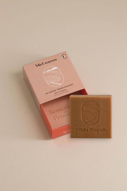 Мыло Miel Soyeux в коробке Infinie Douceur. Содержит мед и прополис от производителей из Прованса в сочетании с оливковым и кокосовым маслом для интенсивного увлажнения без красителей. Комплексное решение для ухода за кожей.