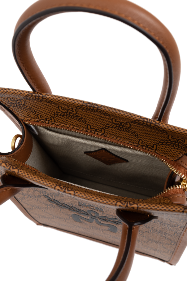 Introducing the epitome of sophistication and functionality – the MCM Shoulder Bag with Logo. This exquisite piece, dominated by a refined brown hue, boasts a distinctive monogram pattern adorning its exterior, punctuated by a larger, central graphic symbol that signifies the renowned designer's logo. Its rectangular silhouette, with a vertical orientation and flat sides, exudes elegance and versatility. Crafted with the utmost attention to detail, the bag features handles made of smooth leather in a contrasting shade of brown, securely attached to the top, ensuring durability and comfort. For added flexibility, it comes with an adjustable shoulder strap, adorned with a golden metal buckle, allowing for effortless transition from a handbag to a shoulder or cross-body carry. The interior, lined with a fabric that harmoniously matches the outer monogrammed design, is thoughtfully equipped with two slip pockets, offering ample space and organization for your essentials. The bag's closure with a zipper ensures the safety of your belongings, making it the perfect companion for both daily use and special occasions. Why Purchase This Product? Elegant design with a recognizable designer logo, adding a touch of luxury to any outfit. High-quality materials including a blend of polyester, polyurethane, and cotton lining for durability and comfort. Versatile carrying options with both handle and adjustable shoulder strap, enhanced with a golden buckle. Practical interior design featuring two slip pockets for optimal organization. Secure zipper closure, keeping your belongings safe.