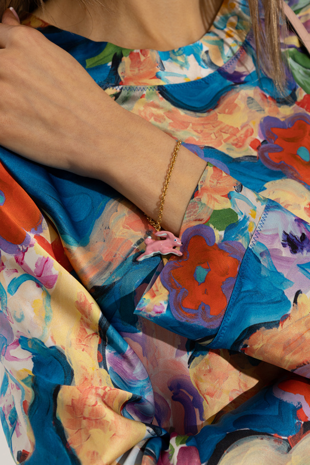 Gold-tone bracelet from Marni. Made of brass, this item features an adjustable lobster clasp fastening and a decorative enamelled hare charm in pink and blue.