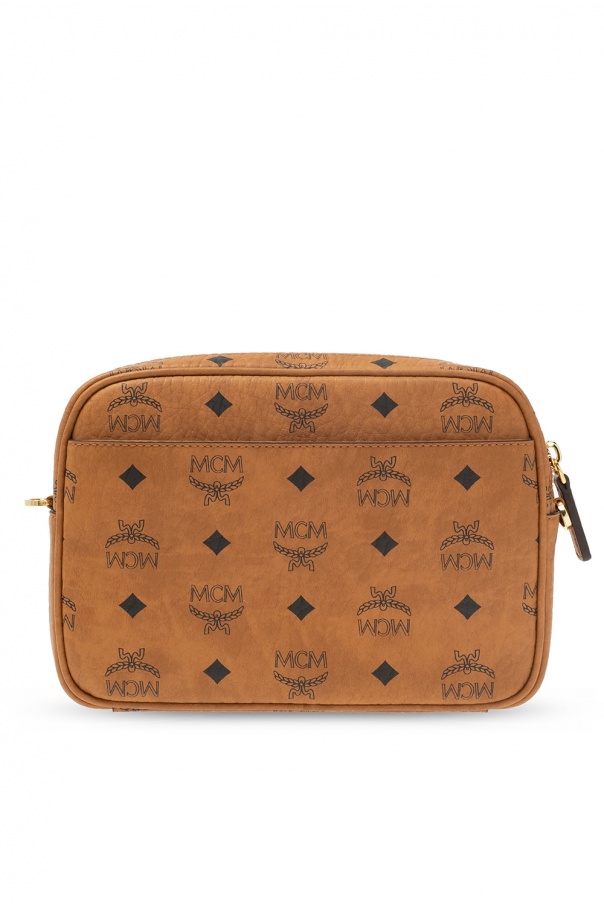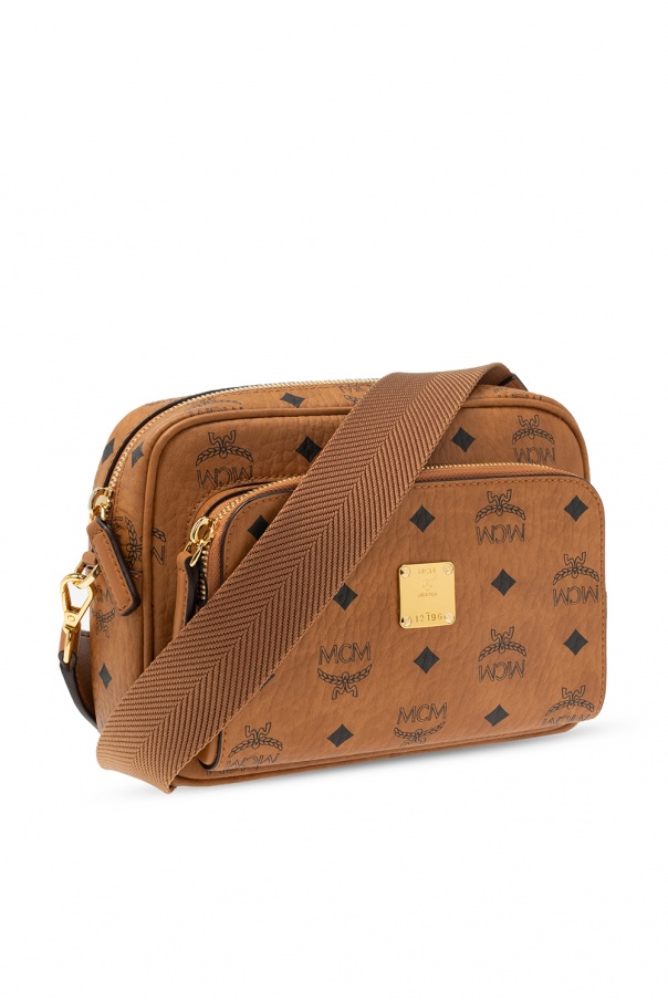 Brown shoulder bag from MCM. Crafted from textured canvas printed with the label's monogram pattern in black, this item has zip pocket on the front, a half-round handle, a detachable and adjustable strap and interior with one compartment and two slip pockets.
