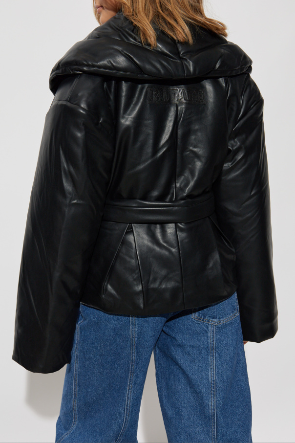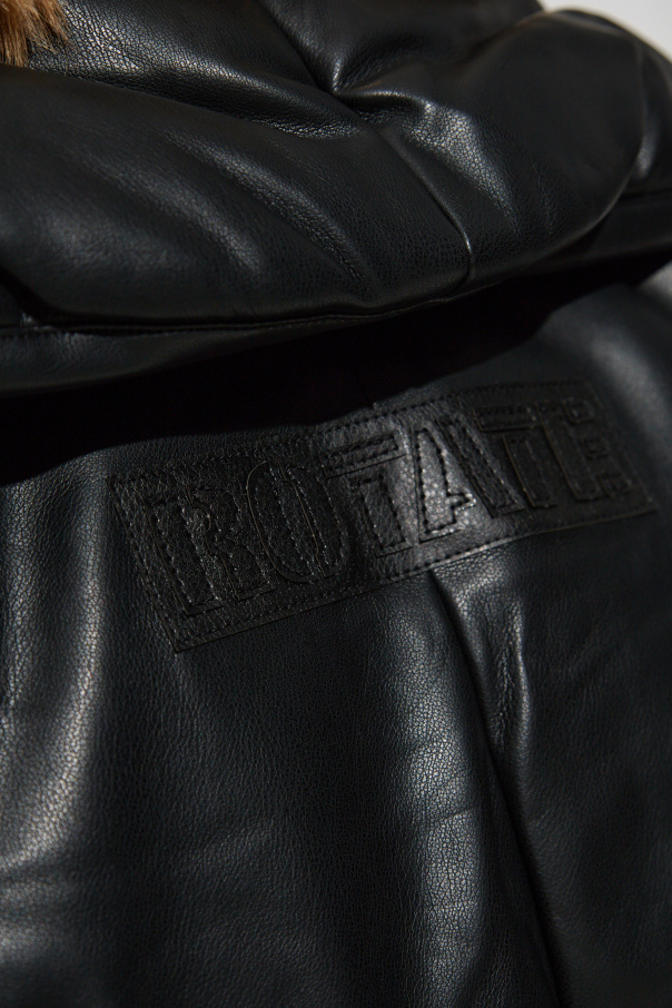 Introducing the exquisite Belted Jacket from ROTATE's exclusive collection, a sublime blend of contemporary fashion and eco-conscious design. This black jacket is crafted from a premium leather-like material, offering both a modern aesthetic and an environmentally friendly choice. Its oversized silhouette is accentuated by a broad collar and wide sleeves, epitomizing current fashion trends while ensuring unparalleled elegance. With a button closure and a waist-cinching belt, this jacket allows for a customizable fit that enhances your silhouette. The embossed "ROTATE" logo on the back signifies its designer origins and adds a touch of prestige. Perfect for both everyday wear and special occasions, this jacket is a versatile addition to any wardrobe. Why Choose This Product? Elegant oversized design with a broad collar and wide sleeves. Environmentally friendly material with a luxurious leather-like finish. Customizable fit with button closure and waist belt. Embossed "ROTATE" logo for designer prestige. Versatile for daily wear and special occasions.