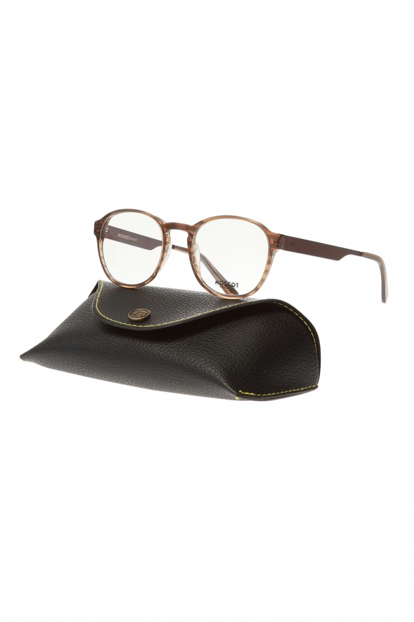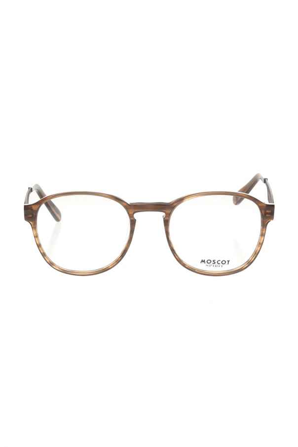 Brown ‘Henry’ optical glasses from Moscot. Gold-tone logo print at the temples. Comes with a case.