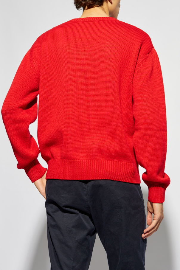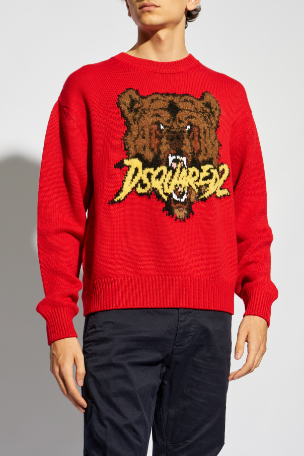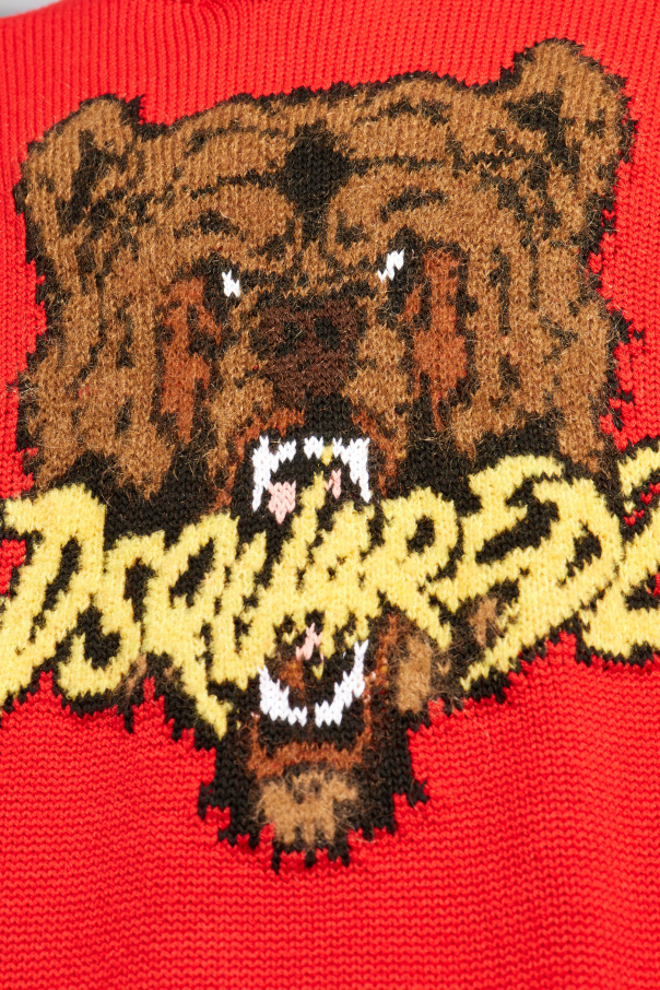 Introducing the epitome of luxury knitwear, the Dsquared2 Woolen Sweater, a masterpiece that encapsulates the essence of high fashion and warmth. Crafted from a sumptuous blend of wool, with touches of polyamide, mohair, alpaca, and cotton, this sweater offers unparalleled comfort and durability. Its vibrant red hue, complemented by the intricate knitting technique, makes it a standout garment. At the forefront of this exquisite piece is the detailed bear head motif, set against the sweater's rich red background. The motif, rendered in shades of brown and black with accents of yellow, features the iconic "Dsquared2" logo, showcasing the brand's signature aesthetic. This striking design not only serves as a testament to the advanced knitting techniques employed but also emphasizes the sweater's unique identity. The classic, straightforward cut, complete with a rounded neckline and long sleeves, is accentuated by ribbed hemlines, cuffs, and neck area, ensuring a snug fit and enhanced insulation. The sweater's back remains unadorned, maintaining a sleek and polished look, with the vibrant red seamlessly enveloping the piece. Why Purchase This Product? Exemplary craftsmanship, featuring a luxurious blend of materials for supreme comfort. Eye-catching bear head motif with "Dsquared2" logo, signifying brand prestige. Timeless design with modern accents, suitable for a variety of occasions. Exceptional warmth and durability, perfect for the colder seasons.