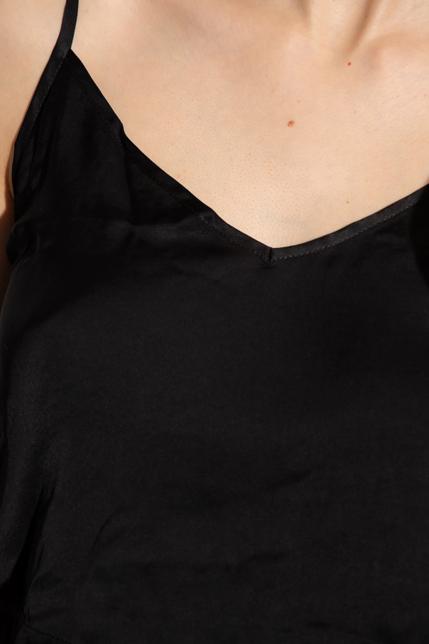 Black ‘Ufset-Tanval’ pyjama from Diesel. This set includes a top with straps and a logo embroidery in red and white as well as shorts with a logo-embroidered elastic waistband.