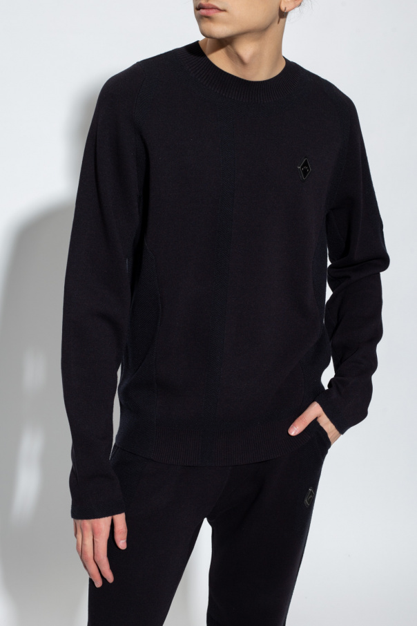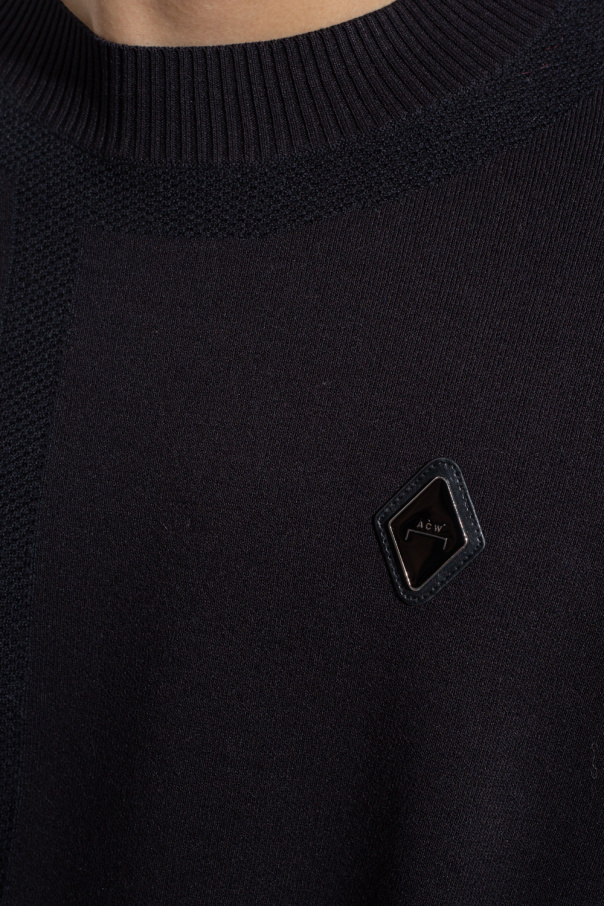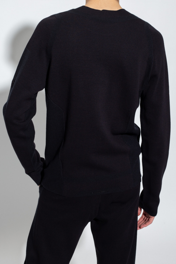 Black crewneck sweater from A-Cold-Wall. Accentuated with textured panelling, this style features a logo appliqué on the front and ribbed trims on the collar, bottom hem and cuffs.