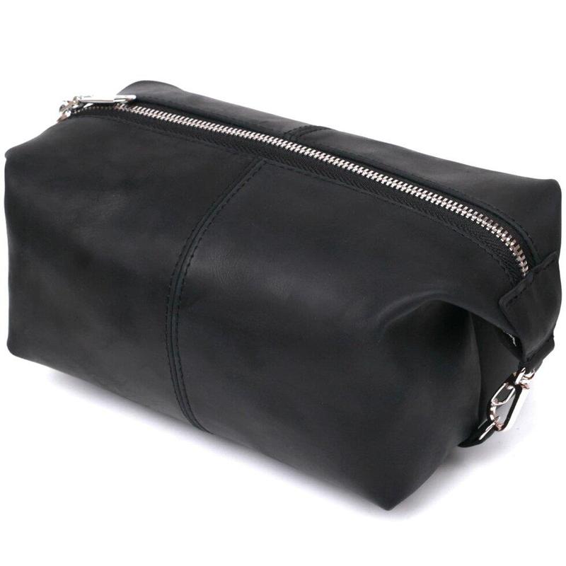 - 2 карабина для регулировки объема.Мужская черная косметичка, несессер из качественной и прочной натуральной кожи