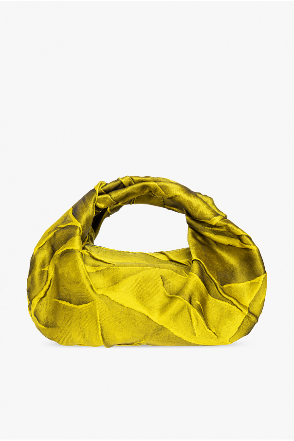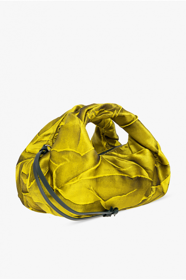 Green and yellow handbag from Dries Van Noten. Crafted from textured fabric, this design features a zip fastening, leather trims, two half-round handles and one internal compartment with a card slot.