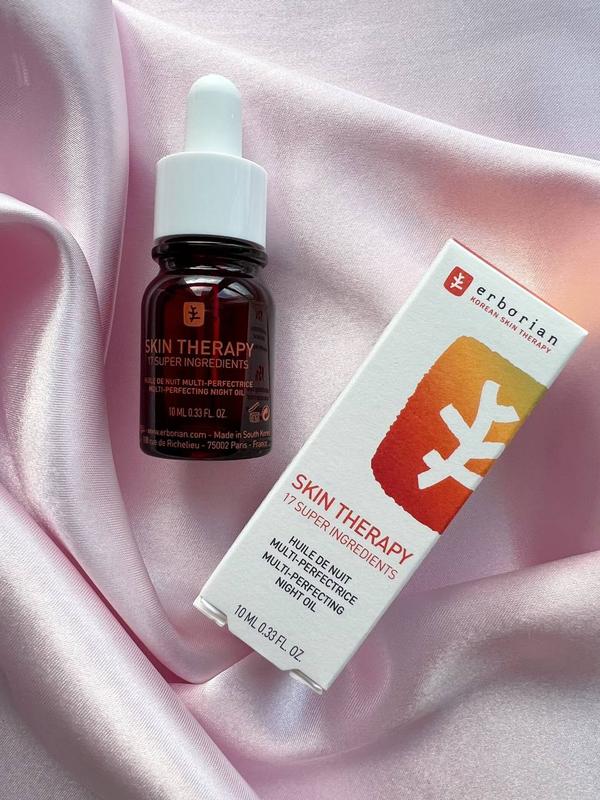 Стоимость на оф сайте - £21.00 (974 грн)Подарите себе гламурную кожу всего за одну ночь. Двухфазное легкое масло было специально разработано для всех типов кожи. Быстро впитывается, нежно питает кожу и не оставляет на ней жирной пленки! Вся сила ухода за кожей Erborian: 17 растительных экстрактов в сочетании с двухфазным мультисовершенствующим маслом, которое работает, пока вы спите. Ваша кожа гладкая, интенсивно питается и увлажняется. Признаки усталости уменьшаются, цвет лица свежий и сияющий. Благодаря двухфазной текстуре Skin Therapy сочетает в себе легкость сыворотки с обволакивающим эффектом масла.