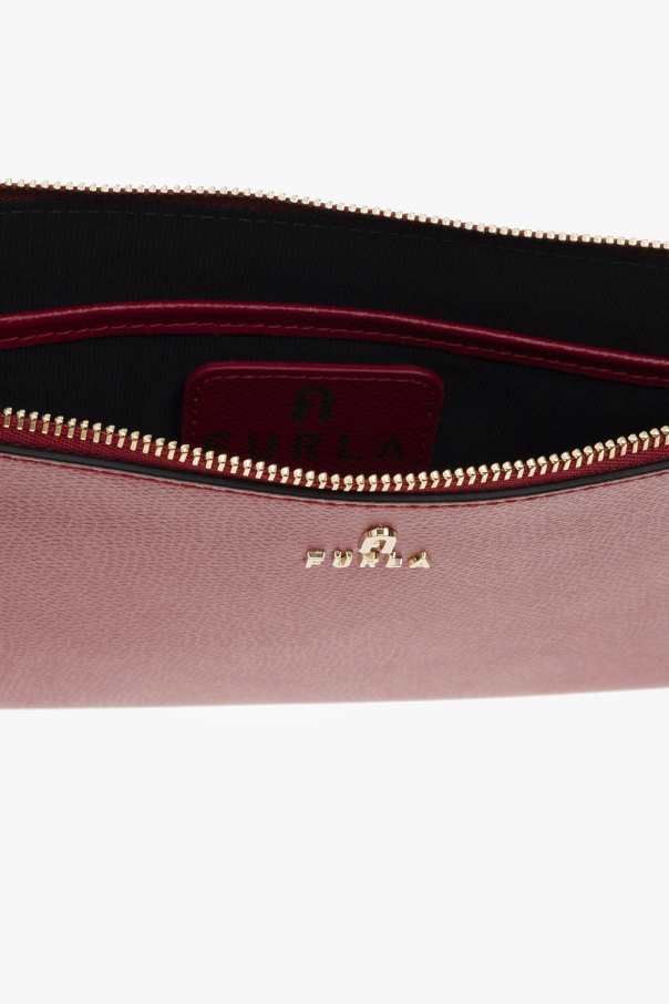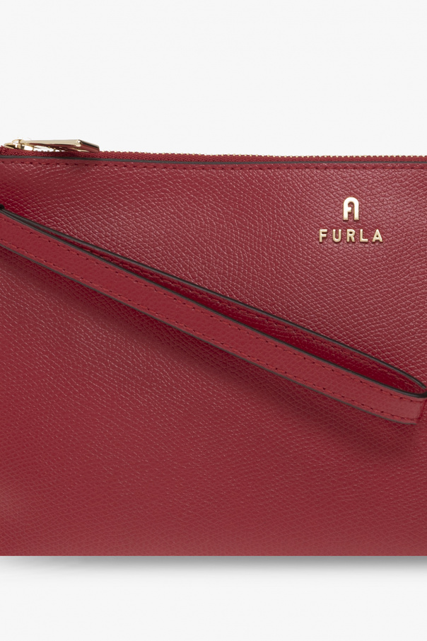 Red ‘Camelia Small’ handbag from Furla. Made of leather, this model features a zip fastening, metal logo appliqué, wrist strap, gold-tone metal hardware and one internal compartment with one slip pocket and six card slots.