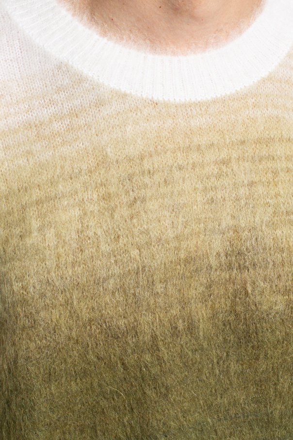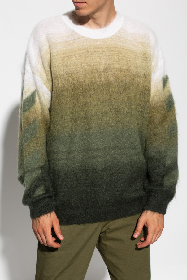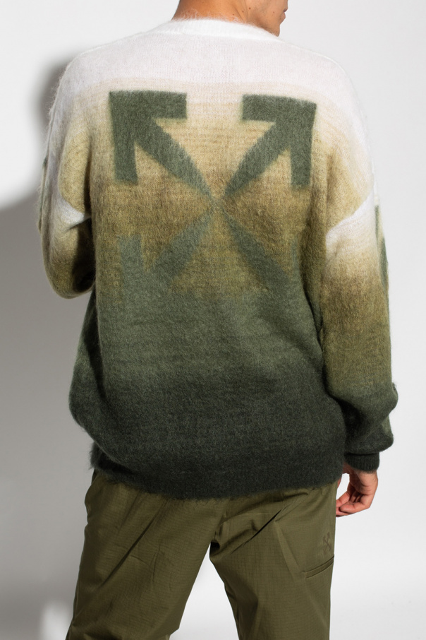 Cream and green sweater from Off-White. Decorated with a logo motif at the back, this round neck design is complete with ribbed trims at the neck, hem and cuffs.