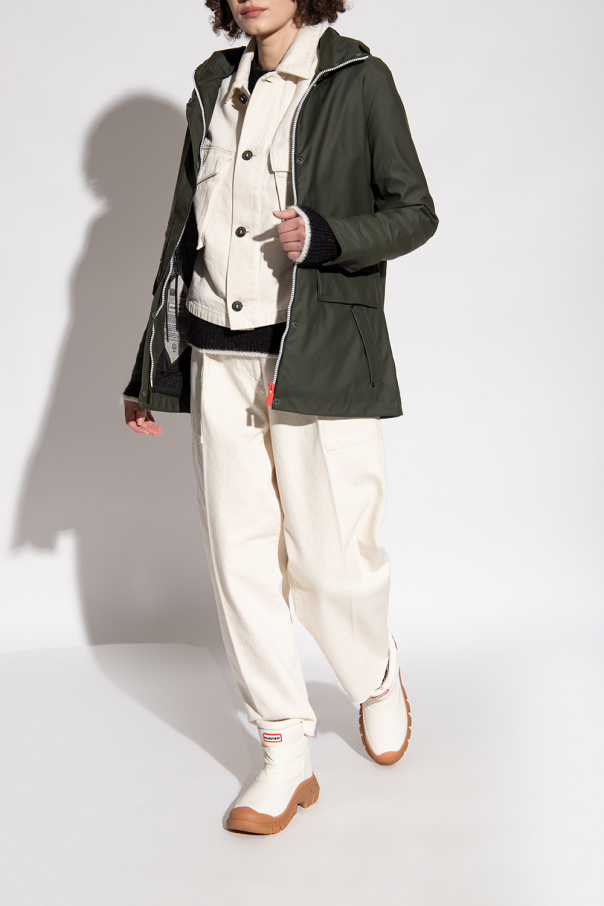 White ‘Intrepid’ waterproof snow boots with a white, red and black logo patch and brown sole from Hunter. Handcrafted with a recycled nylon upper, recycled fleece lining and an innovative Ortholite® footbed. The topline retains warmth. Can be worn in temperatures as low as -20°C (-4°F).