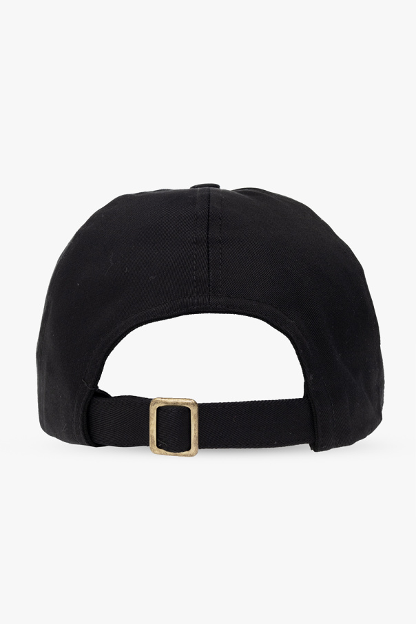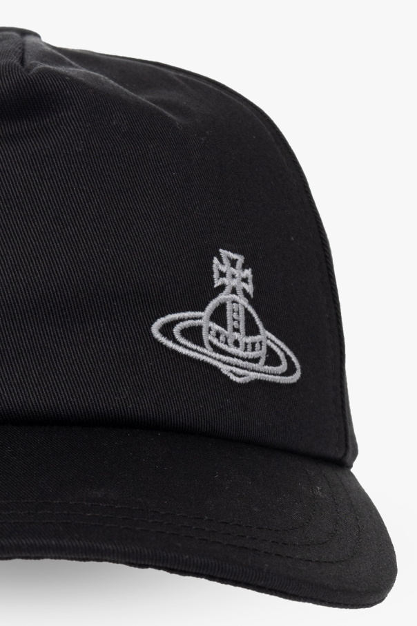 Black baseball cap from Vivienne Westwood. Crafted from cotton, this item features a grey logo embroidery on the front and adjustable buckle strap at the back.