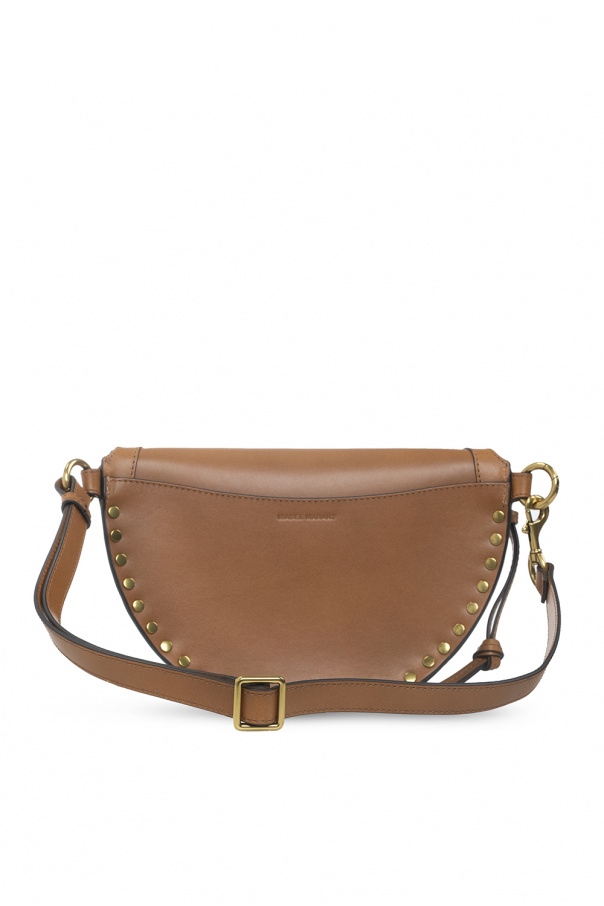 Brown ‘Skano’ belt bag from Isabel Marant. Made of leather, this model features a zip closure with a charm, antique gold-tone studs, logo-embossed back pocket, adjustable belt with snap hooks and one internal compartment with one card slot.
