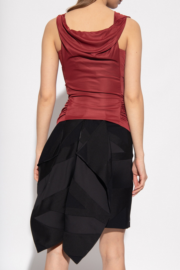 Maroon sleeveless top from Vivienne Westwood. Spun from viscose yarns, this style features gathered detailing on the front.